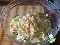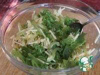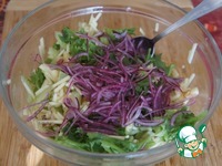 Яблоко очистить и нашинковать тонкой соломкой, слегка сбрызнуть лимонным соком. Добавить в миску к салату. |