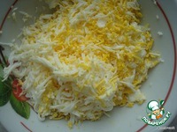 Добавляем тертый сыр, чеснок, майонез и перемешиваем. |