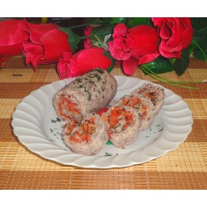Заворачиваем его в фольгу и отправляем в холодильник на 2-3 часа. Затем убираем фольгу и нарезаем рулет на кусочки. Приятного аппетита! |