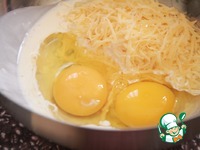 Соедините яйца, сливки, сыр (потертый на мелкой терке) |