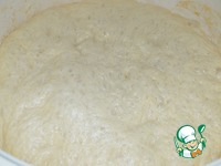 Смешать дрожжи с мукой. Влить подогретое до 38 С молоко, перемешать. Яйца взбить с сахаром и солью, добавить в тесто, перемешать. Добавить растопленное масло и вымесить тесто. Дать подняться. |
