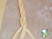 Для косы тесто расскатать и нарезать на полосы. Сплести косу. |