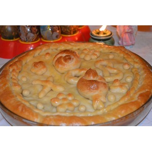 Описание: Без такого пирога у нас не обходится не один праздник, но только в Пасху я украшаю его особенно нарядно.