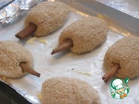 3. Затем вынуть, воткнуть палочки корицы и обжарить на среднем огне в масле до готовности (минут по 6 с каждой стороны). |