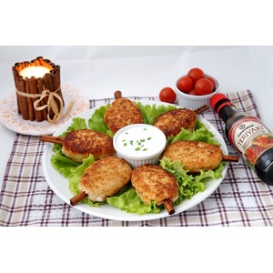 Описание: В этом блюде необычно всё -и фарш с добавлением яблока, и сочетание ароматов куриного мяса и корицы, и интересная подача. Обязательно нужно дать фаршу постоять, чтобы соевый соус-маринад от Kikkoman помог ингредиентам "подружиться".