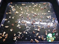 Распределите карамель между двумя формами для запекания, примерно 20х30 см или один большой противень с бортами. У меня 35х40 см. |