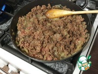Добавить к луку фарш и обжарить лук с фаршем до готовности. Посолить, поперчить по вкусу. |