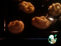 Тем временем должна быть разогрета духовка до 170 градусов. Ставим противень с булочками в горячую духовку и печем около 15 минут |