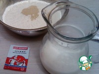 Из этого количества теста выйдет 6-8 небольших булочек В муку всыпаем пол-пакетика дрожжей "Саф-момент" |