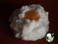 Разогреть духовку до 230 градусов. Свежие яйца разделить на белки и желтки. Желтки аккуратно отложить в сторону. Белки взбить до крепких пиков с солью. |