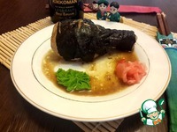 На тарелку наливаем соус. Подаем ножки по-желанию с васаби и маринованным имбирем |