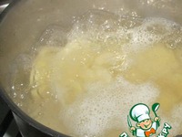 Картофель очистить и нарезать ломтиками толщиной 0,3 см. Положить в кипящую подсоленную воду, проварить 5 минут. |