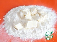 Просеиваем муку, добавляем сливочное масло и перемешиваем в крошку. |