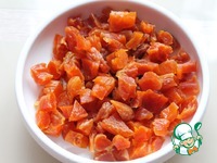 Курагу нарезаем мелко. Если у Вас сухая курага, предварительно несколько минут замачиваем в воде. |