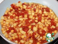 Выкладываем первую начинку из кураги, груш и нута. Затем выкладываем вторую начинку из нута с апельсином. Заливаем соусом и посыпаем крамблом. Ставим в разогретую до 180 гр. духовку на 30 - 35 мин. |