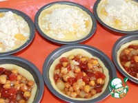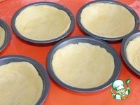 Можно делать эту выпечку в виде двух тартов. Я решила сделать в виде тарталеток. Тесто делим на 6 частей, каждую раскатываем. Выкладываем в формы, формируем бортики. |