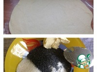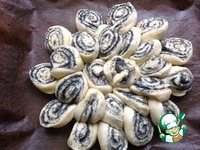 Готовое тесто раскатать тонко в круг (7 мл). Сделать маковую начинку: мак, 1 ст л теплого сливочного масла, ванилин и 1 ст л сахара тщательно вымесить. |