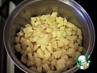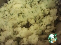 Когда картофель уже сварен, сливаем воду в миску (ОНА НАМ ЕЩЕ ПОНАДОБИТСЯ, НЕ ВЫЛИВАЙТЕ!), и делаем пюре. Солим, перчим, добавляем масло и лук (или укроп)). |