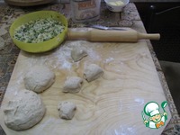 Начинаем лепить пирожки. Тесто у нас очень воздушное. Скатываем колбаски и нарезаем порционные кусочки произвольно. |
