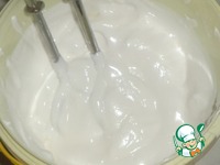 Приготовим глазурь. Охлажденные белки взбиваем в крепкую пену, затем подсыпаем сахар и взбиваем до загустения. |