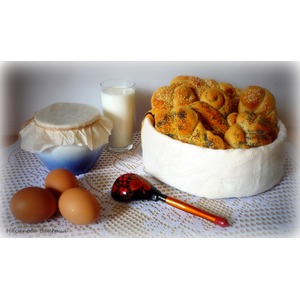 Противень смазать маслом и выложить на него наши готовые изделия. Поместить их в теплое место еще на 30 минут для окончательной расстойки. После смазать булочки молоком (можно использовать яичный желток), посыпать сверху. кунжутом или маком и выпекать в предварительно нагретом духовом шкафу на 180 градусах 20-25 минут. При выпекании поместить на дно духовки емкость с водой. |