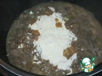 Добавляем муку, перемешиваем и обжариваем еще пару минут |