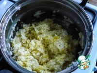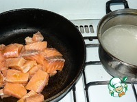 Как только лосось меняет цвет, т. е. становится мягче, разминаем его лопаткой или ложкой. |