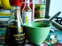 Смешиваем чеснок, кайен, приправу для рыбы. Добавляем 2 ст. л ложки соевого соуса kikkoman и 1 ст. л. рисового уксуса. Солить или не солить, решайте сами. Я немного подсолила. |
