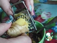 Натираем немного имбиря, на глаз примерно, там меньше чем четверть чайной ложки. Перемешиваем. |