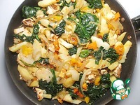 Шпинат положить в кипящую воду, варить 1 минуту, после чего отбросить на дуршлаг. Лук очистить и порезать полукольцами, шпинат, когда с него стечет лишняя влага, крупно порезать. |