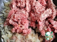 В это это время займёмся начинкой. Лук режем кубиками и жарим на разогретой сковороде. |