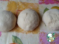 Выложить тесто на посыпанный мукой стол, и делим на три шарика, с размером ладони. |
