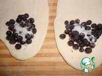 Тесто разделить на кусочки и раскатать каждый кусочек в овал. На один конец выложить по 2 ч. л. свежезамороженной черники, сверху присыпать сахаром. |