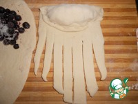 Чернику закрыть тестом, прищипнуть края, чтобы черника не вытекла. А второй край теста нарезать на полоски. |