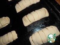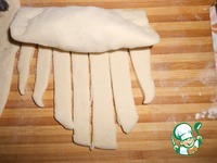 Нарезанными полосками завернуть часть булочки с начинкой. |