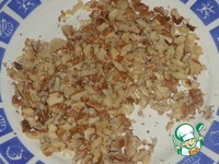 Подготовим начинку. Грецкие орехи немного измельчить, у меня они вот такие. По желанию можно измельчить их с помощью кофемолки в крошку. Орехи смешиваем с жидким медом и перемешиваем. Начинка готова. |