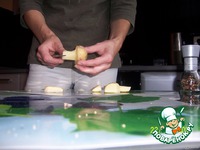 Выкладываем грудку, салат, грибы, поливаем маслом грибочки и присыпаем шляпки молотым перчиком. И быстро несемся подавать гостям, а то все жрать хотят, а мы тут изысками занимаемся. |