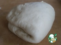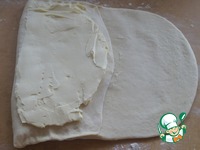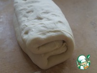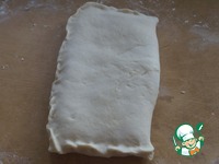 Раскатать охлажденное тесто в прямоугольник 20*45 см. Сложить в 4 слоя: сначала от краев к центру, затем одну половину на другую. Снова завернуть в пленку и убрать в холод на 20 минут. |