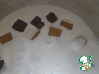 Для начинки: выложить ириски в кастрюлю, залить молоком и варить до полного их растворения и загустевания массы. |