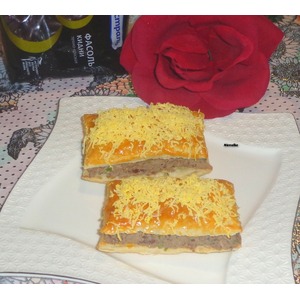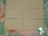 Слоеные прямоугольнички разрезаем на две части вдоль. Одну часть смазываем паштетом и накрываем другой. Сверху украшаем пирожные тертым яичным желтком. Подаем к столу. Приятного аппетита! |