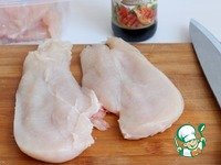 Разрежем повдоль грудку. Можно слегка отбить. |