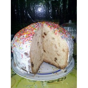 200 гр. маргарина (масло +маргарин ) растопить и смешать с 1 стаканом сахара, добавить 1 стакан сметаны, разрыхлитель (0.5 чайной ложки соды с уксусом ) 3 яйца,1 стакан изюма. Размешать и добавить 3 стакана муки. выпекать в мультиварке : режим выпечка 150 градусов.