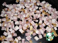 В разогретой сковороде обжариваем нарезанный кубиками бекон до золотистого цвета. |