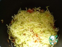 Добавить кабачок, натёртый на крупной тёрке, обжаривать 3-5 минут до готовности овощей |