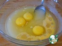 В большой глубокой миске перемешать растительное масло с сахаром. Затем разбить туда яйца. |