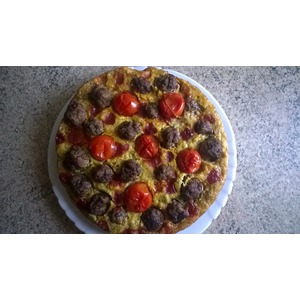 13. Поверх массы вдавливаем мясные шарики и помидоры черри.