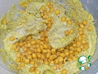 Нут сваренный на курином бульоне со специями переложила в тесто. |