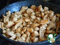 Затем добавить куриное мясо. Посолить при необходимости, добавить паприку. Обжарить до легкой золотой корочки, дать остыть |