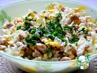 В чашке смешать капусту, яйца, куриное мясо |