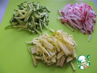 Редис, яблоко и огурец нарезать соломкой. |